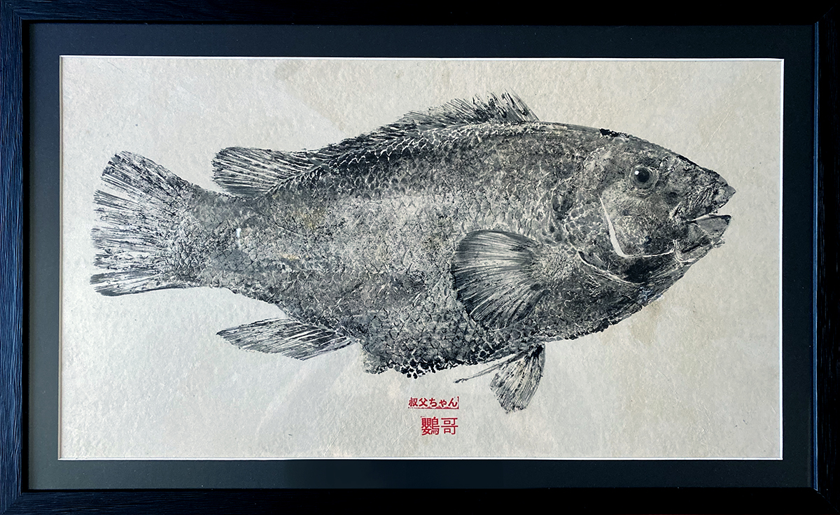 Le gyotaku est un art japonais qui consiste à imprimer l’empreinte d’un poisson en l’enduisant d’encre puis en appliquant délicatement dessus une feuille de papier de riz.